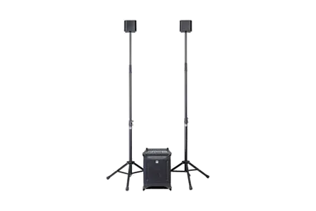 Diese einfach zu transportierende Anlage verfügt über sehr vielfältige Möglichkeiten, um selbst dem anspruchvollsten Künstler gerecht zu werden. Ideal für Solisten, Duos oder Ensembles.